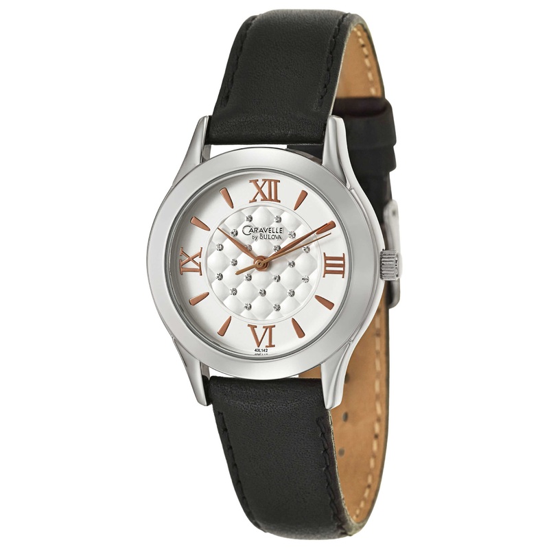 Caravelle, Crystal, Women’s Watch, Stainless Steel Case, Leather Strap, Japanese Quartz (Battery-Powered), 43L142
