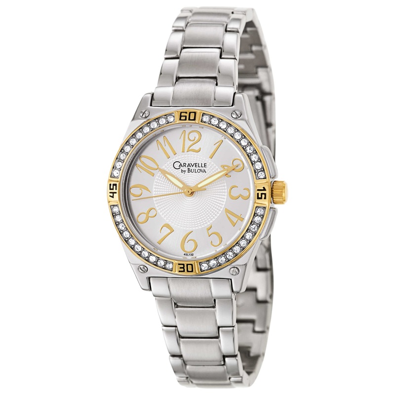 Caravelle, Crystal, Women’s Watch, Stainless Steel and Yellow Gold Plated Case, Stainless Steel Bracelet, Japanese Quartz (Battery-Powered), 45L132
