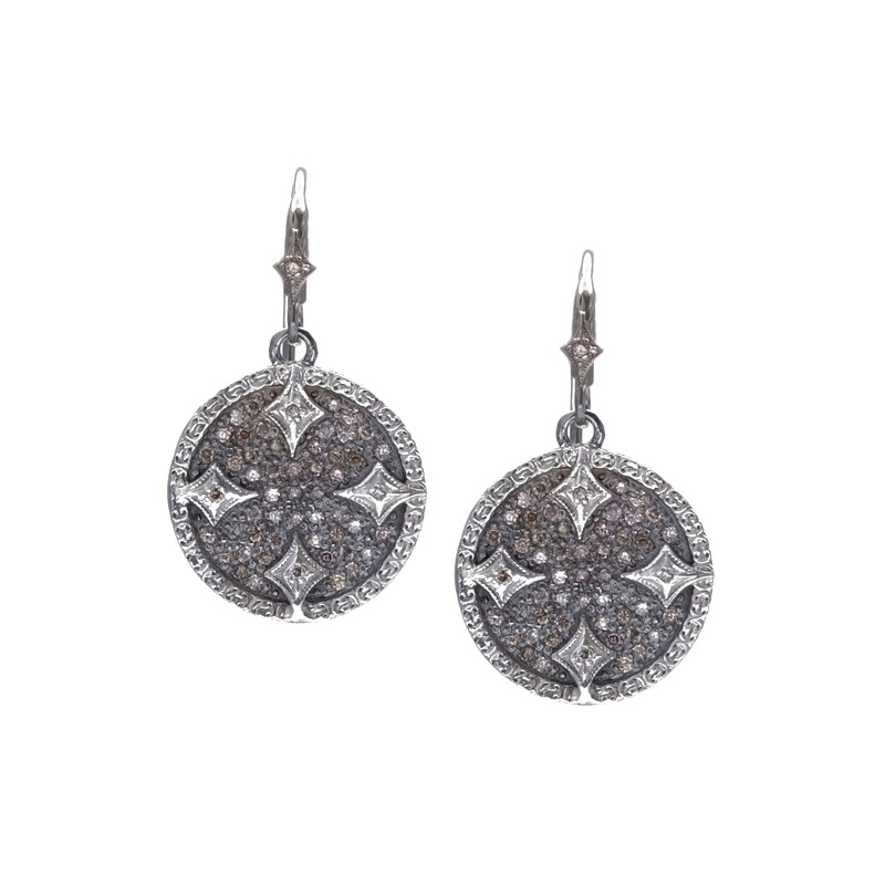 Carved Pave Disc Drop Earrings-Sterling Silver Small Circle Pave Constellation Disc Drop Earrings with Crivelli Corners and Champagne Diamonds. (0.65 TCW)Dimensions:Earring Disc 0.50" (16mm)