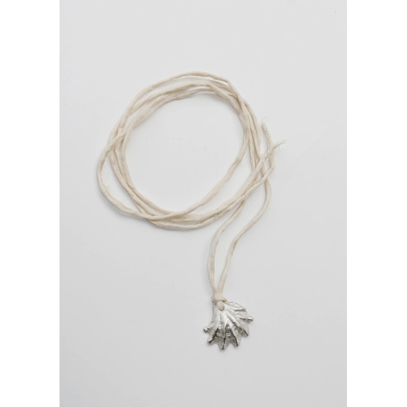 Your connection to the sea. A cast sterling silver shell pendant on creamy satin silk.