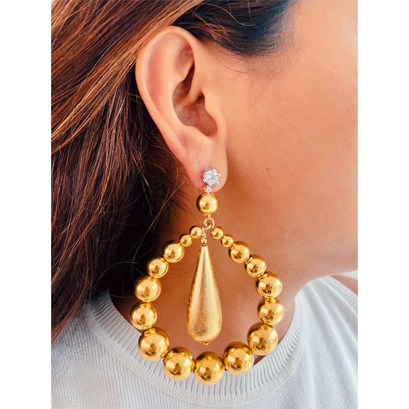 The Golden Catherine Gold Pearl Earrings are the statement Earrings you need !!!Finely hand-crafted with semi precious stones, this earring is sure to steal the spotlight with its intricate work and plating shimmer. These earringswill give your Western ens