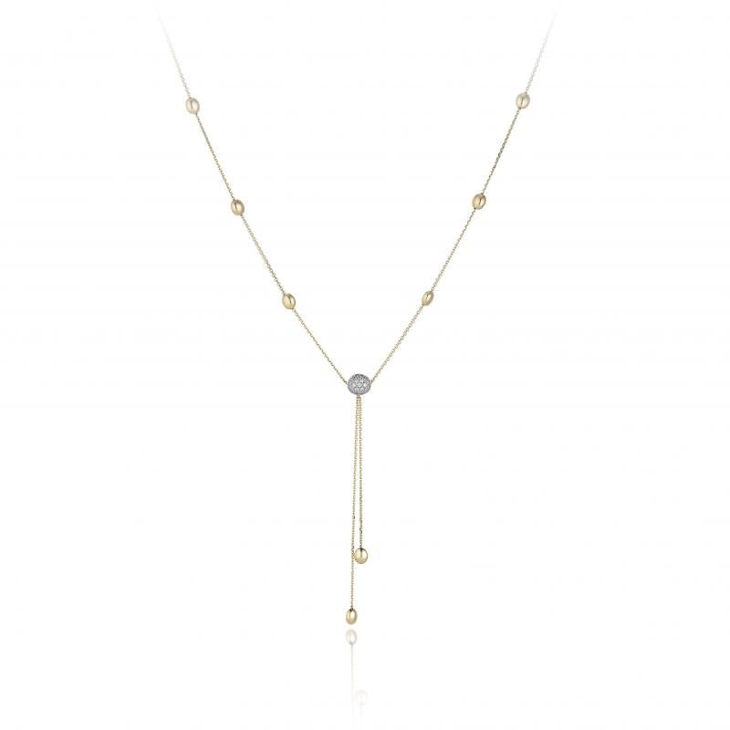 18 k gold yellow gold 45 cm lenght lariat necklace with diamond pav 0,13 ct.