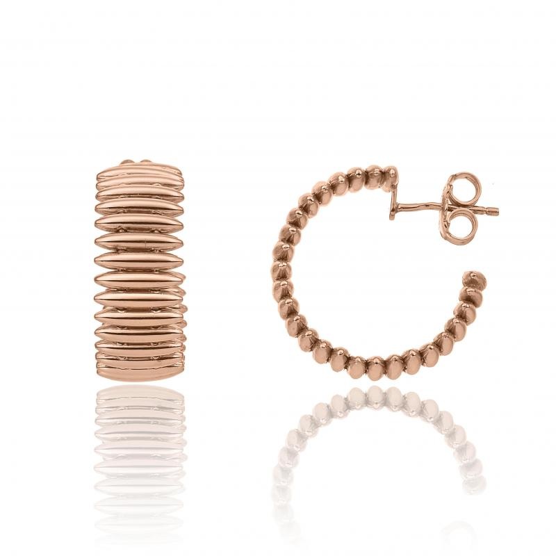 18 ktrose gold hoop earringswith bullet design.