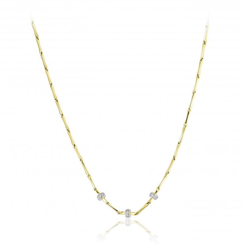 18 kt yellow gold necklace with 0,18 ct diamond circle pendants.