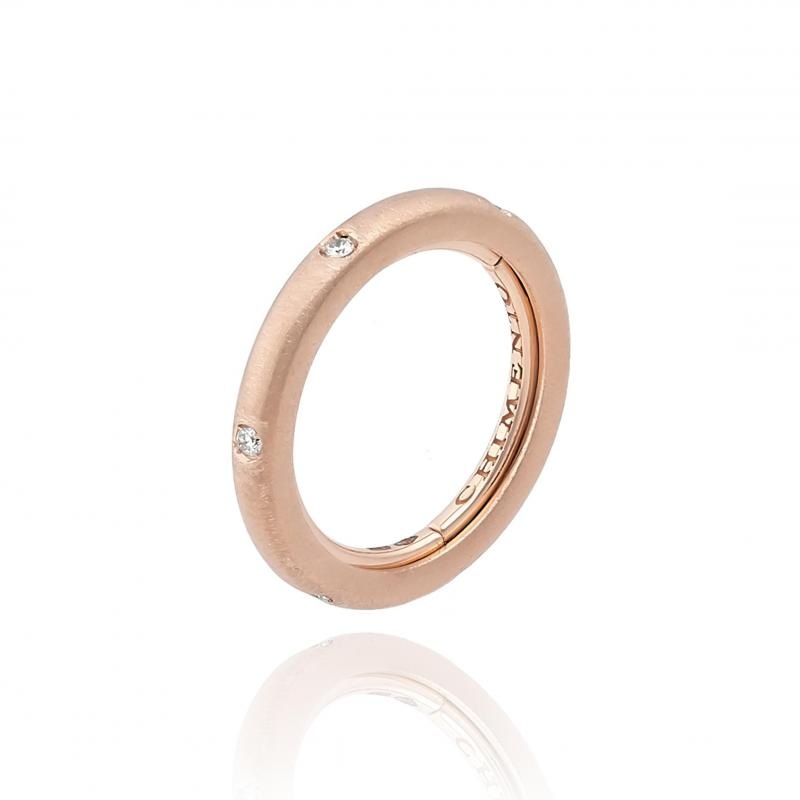 18 kt satin rose gold band ring with natural diamonds (0,096 ct). Band width 2,5 mm.