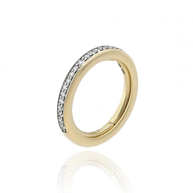 18 kt yellow gold band ring with natural diamond line (0,20 ct). Band width 2,5 mm.