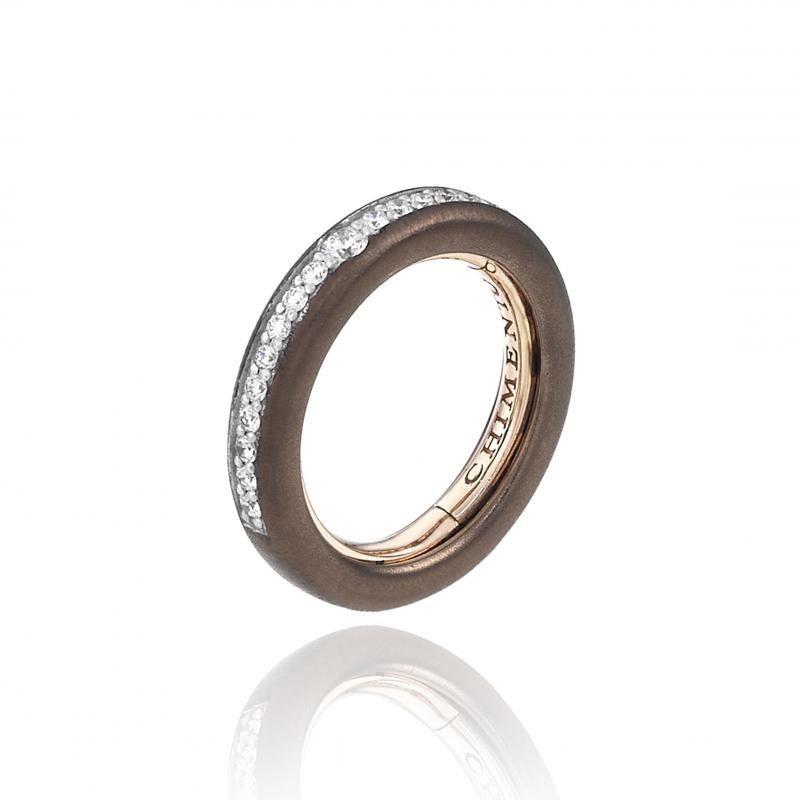 18 kt chocolate gold band ring with natural diamond line (0,35 ct). Band width 4 mm.