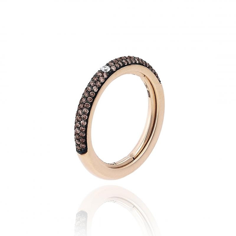 18 kt white gold ring with natural diamonds pav ct. 0,36. Band height 2,5 mm. The ring hosts the patented Size-Fit system that adapts to the fingers.