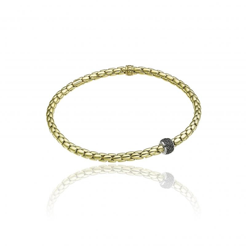 18 kt yellow gold stretchable bracelet with black diamonds 0,27 ct.