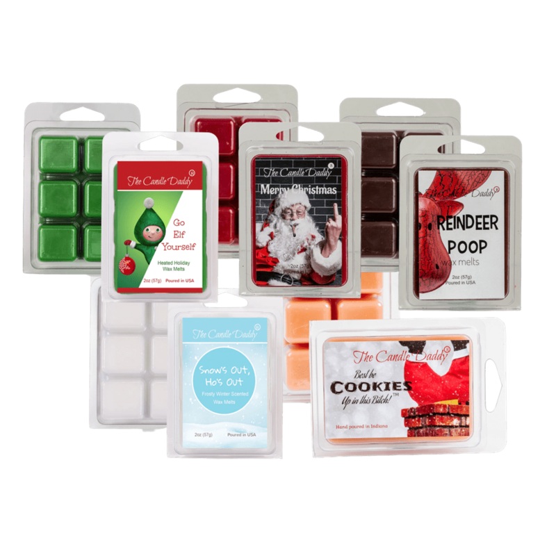 - Perfect Assorted 5 Pack of Wax Melts that will get you in the mood for Christmas! Includes Go Elf Yourself(Heated Holiday Mint);Merry Christmas – Santa Finger(Christmas Splendor);Reindeer Poop(Coffee);Snow’s Out, Ho’s Out(Frosty Winter);Best Be Cookies Up In This Bitch(Snickerdoodle)