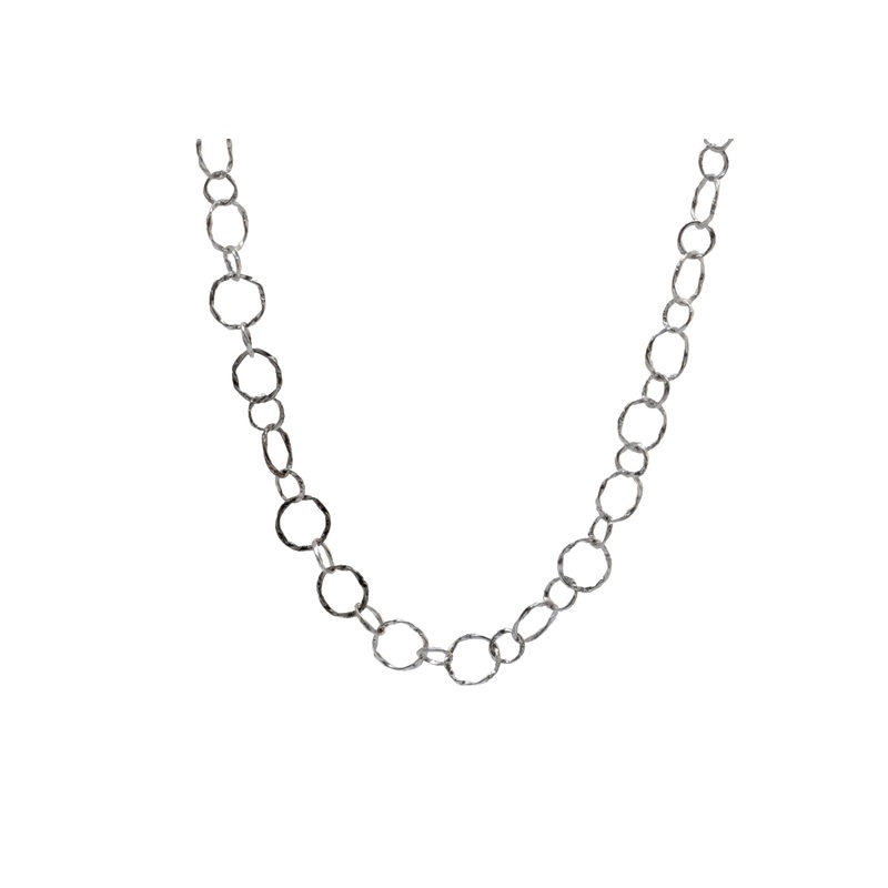 Grey Sterling Silver 34" alternating 10mm and 7mm round link necklace. Adjustable at 30", 32" and 34" with toggle.
