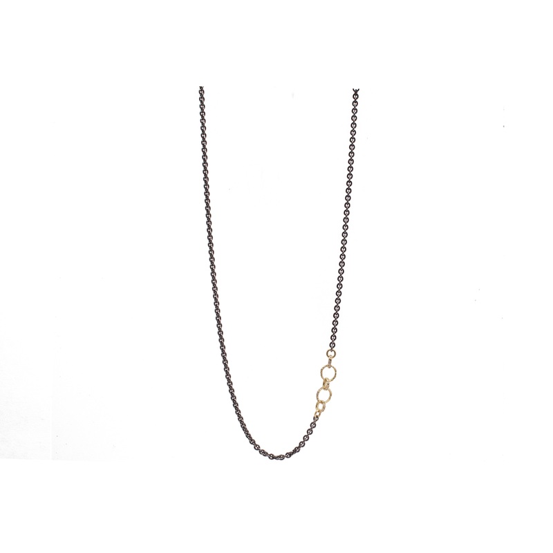18K Yellow Gold and Blackened Sterling Silver 32″ Necklace with Textured Circle Links. Adjustable at 30″ and 32″.