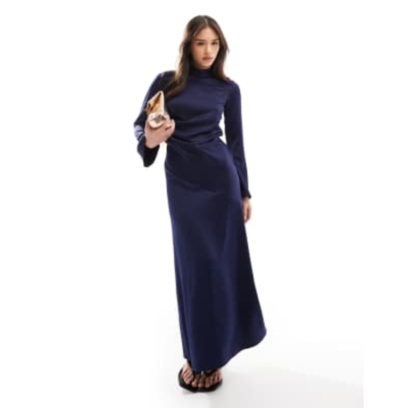 Find the best selection of Closet London long sleeve satin drape maxi dress in navy. Shop today with free delivery and returns (Ts&Cs apply) with ASOS!