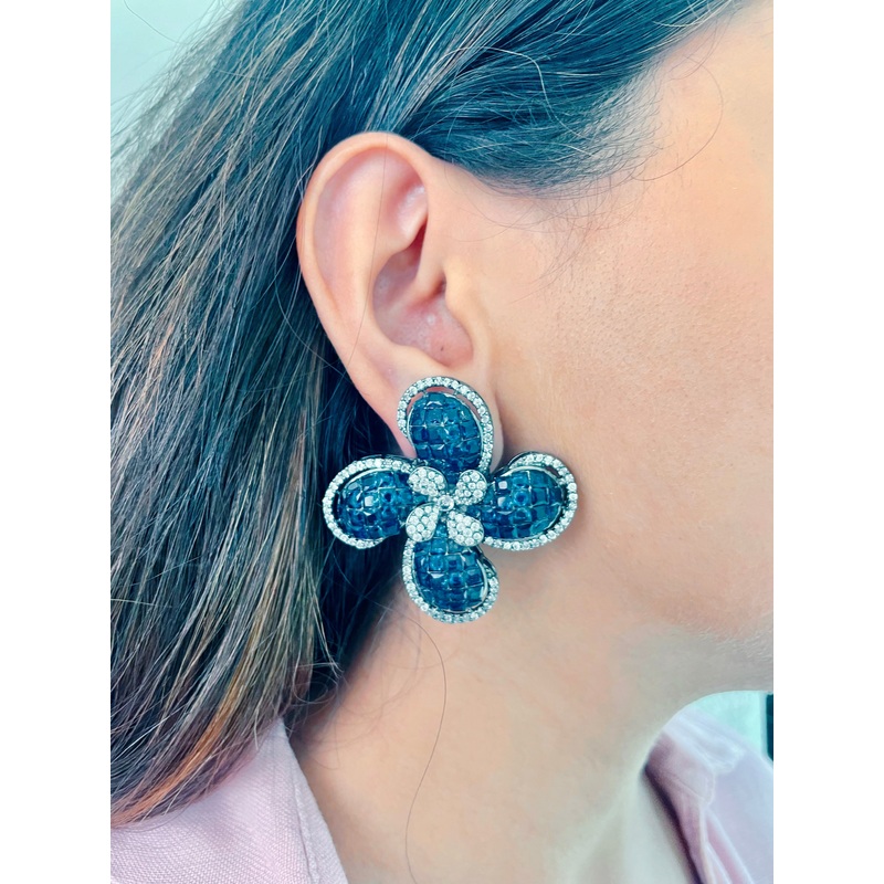 The Clover Blue Stud Earrings are the statement studs you need !!!Finely hand-crafted with semi precious stones, this earring is sure to steal the spotlight with its intricate work and plating shimmer. These earringswill give your Western ensembles a flawlessly beautiful look.