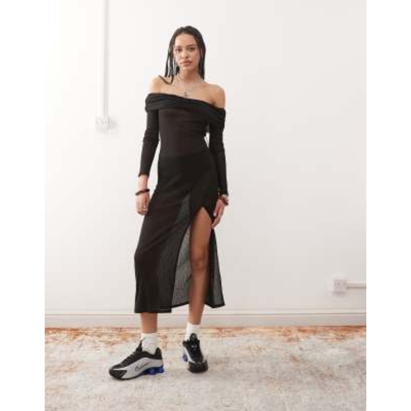 Shop the latest COLLUSION off the shoulder sheer midaxi dress in black trends with ASOS! Free delivery and returns (Ts&Cs apply), order today!