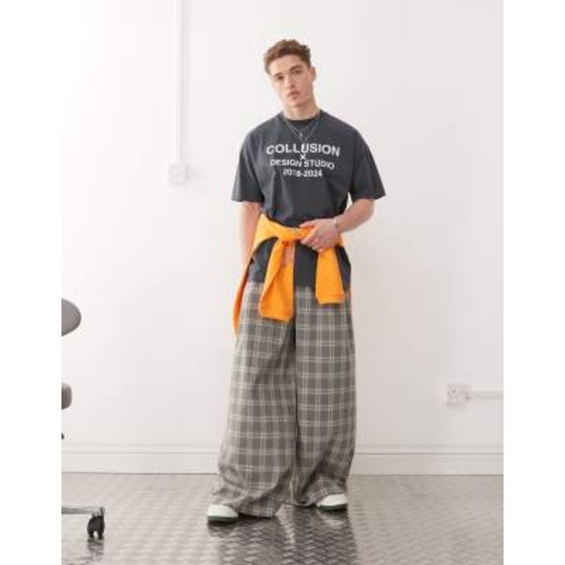 Find the best selection of COLLUSION relaxed wide leg plaid dress pants in gray. Shop today with free delivery and returns (Ts&Cs apply) with ASOS!