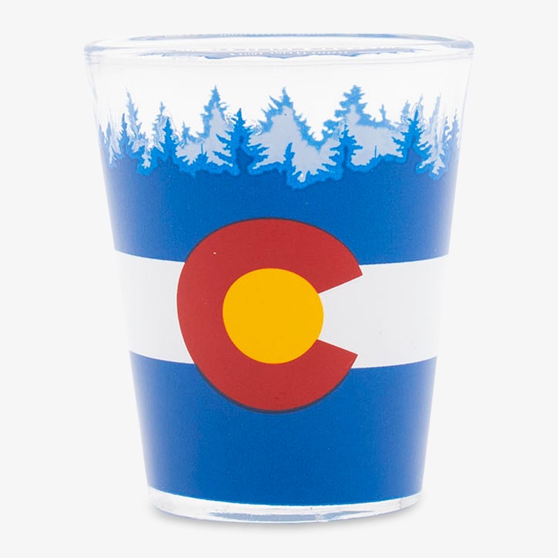 Colorado Flag + Colorado forest = Aksels awesome shot glasses! Wash by hand for best results; not meant to be cleaned in the dishwasher.