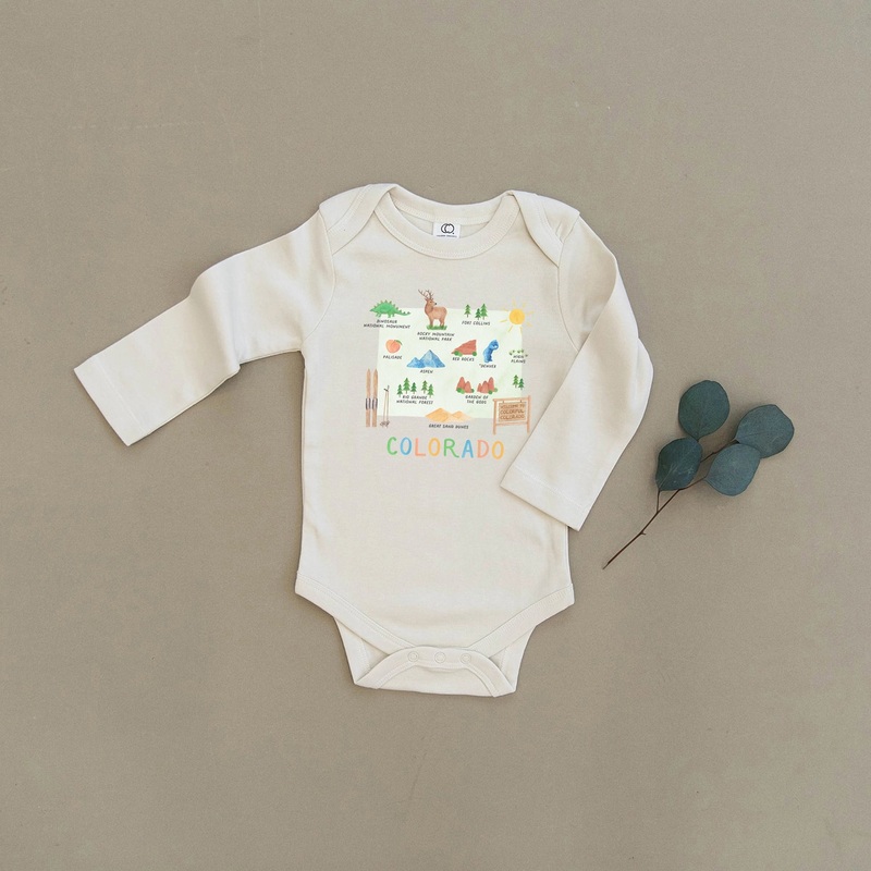 Be the first to review “Colorado Map Organic Cotton Baby Onesie – L/S”