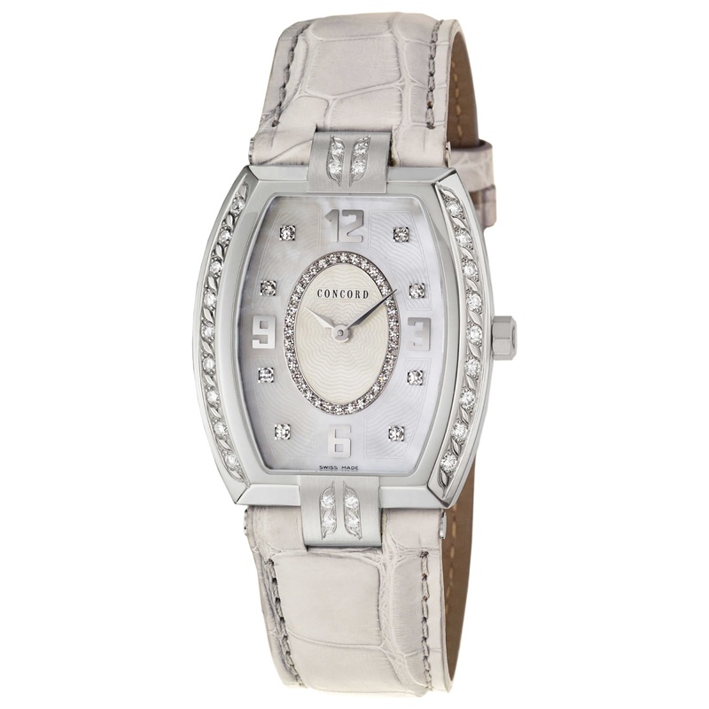 Concord, La Scala Tonneau, Women’s Watch, Stainless Steel and Diamonds Case, Leather Alligator Strap, Swiss Quartz (Battery-Powered), 0310939