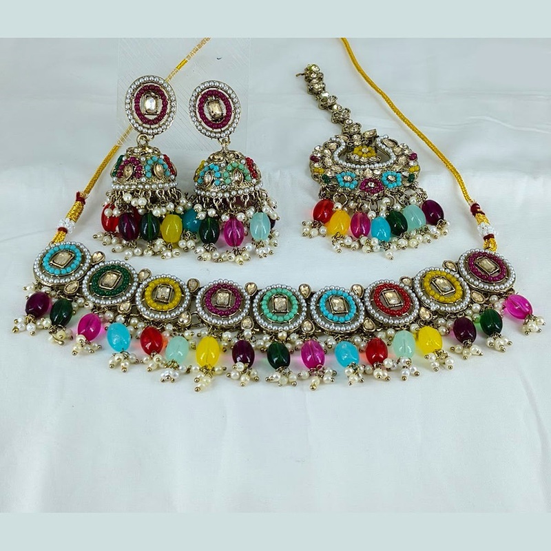 Elevate your ethnic and festive style with the Corbeda Fashion Elegant Gold Plated Sparkling Austrian Stones and Beads Necklace Set a timeless piece of jewellery designed to add sophistication and charm to every outfit. This exquisite necklace set is beaut