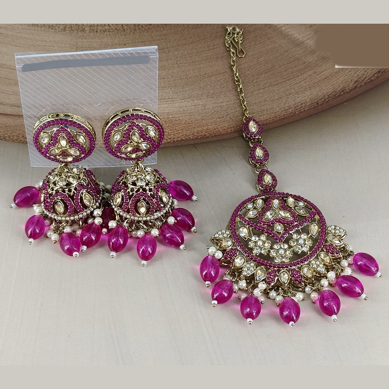 Corbeda Fashion Gold Plated Elegant Stone And Beads Jhumki Earrings With Maangtikka