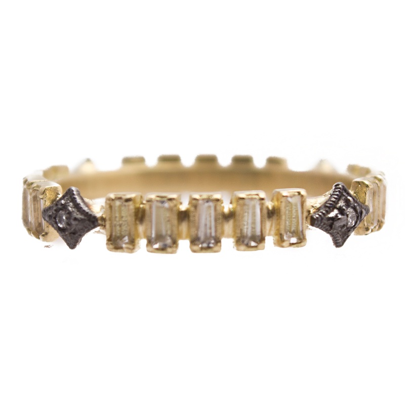 18k Yellow Gold And Sterling Silver Crivelli Ring with White Sapphire Baguettes and White Diamonds. (.02 TCW)