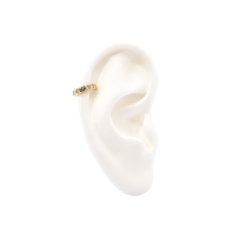 18K Yellow Gold and Blackened Sterling Silver Medium Hinged Crivelli Ear Cuff with White and Champagne Diamonds (0.15 TCW)