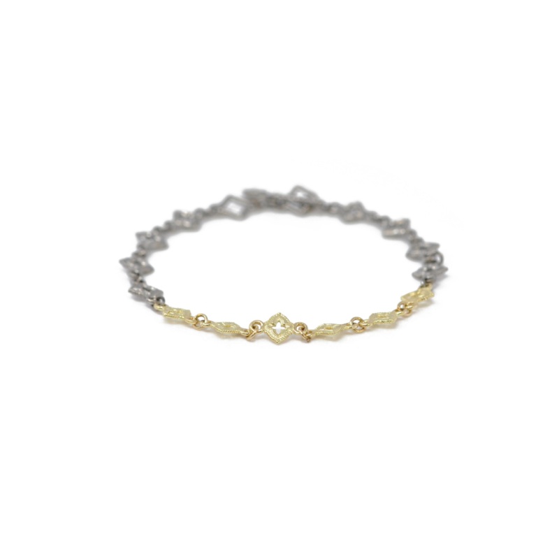 18kt Yellow Gold and Grey Sterling Silver Scroll Bracelet. Adjustable 7" and 7.5".