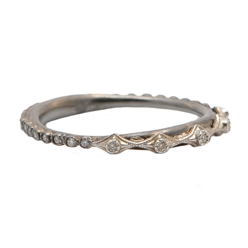 18K Yellow Gold and Blackened Sterling Silver Crivelli Stack Band with Champagne Diamonds. (0.14 TCW)