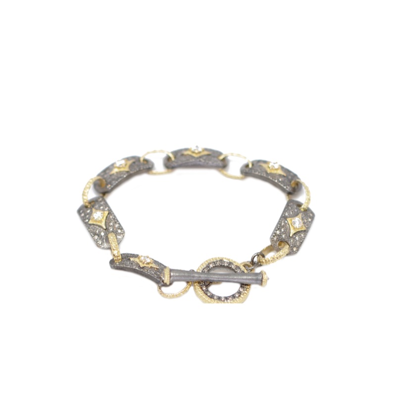 18k Yellow Gold and Grey Sterling SilverTextured Link Braceletwith 0.89 CT White and Champagne Diamonds.