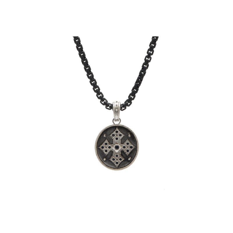 Sterling Silver and Blackened Sterling Silver 22″ Cross Medallion Pendant Necklace with Black Sapphires