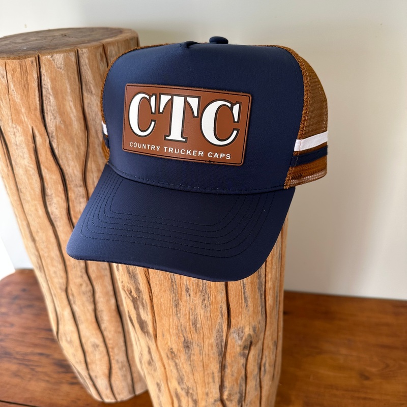 CTC Navy Tan Leather Patch Trucker Cap