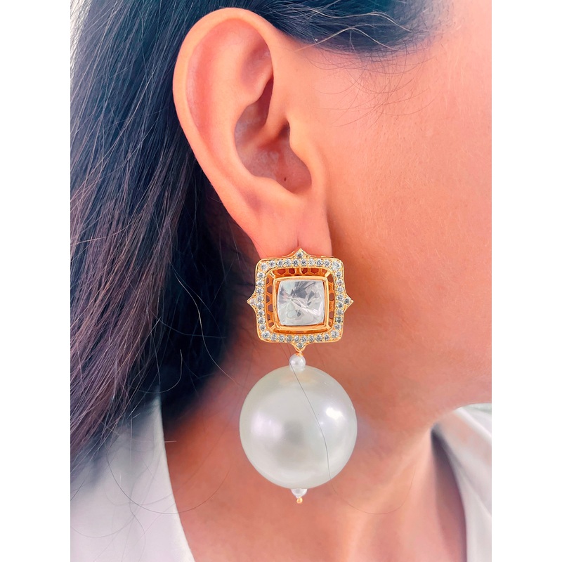 Cuba Kundan Pearl Drop Earrings