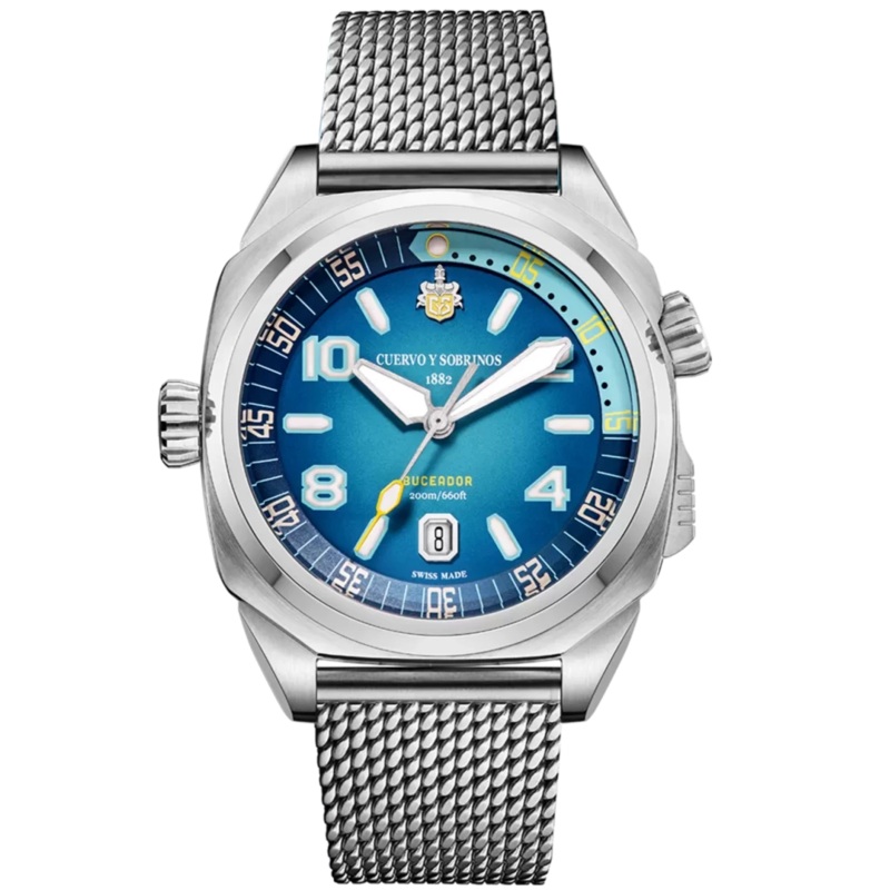 Cuervo y Sobrinos Watch Buceador Caribe Bracelet 2860B.1AZ.Beyond its functional attributes, the Buceador Caribe delivers distinctive styling and brims with Caribbean charm.