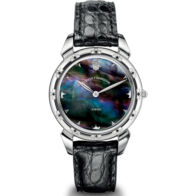 Cuervo y Sobrinos Watch Senora Clasico 3112.1MB-I. Inspired by the lifestyle prevalent in 1950s Havana, the Senra Clasico captures the charm of this bygone era. Furthermore, with its sensuous, curving lines and bewitching looks, this watch captivates attention with its smouldering appearance.