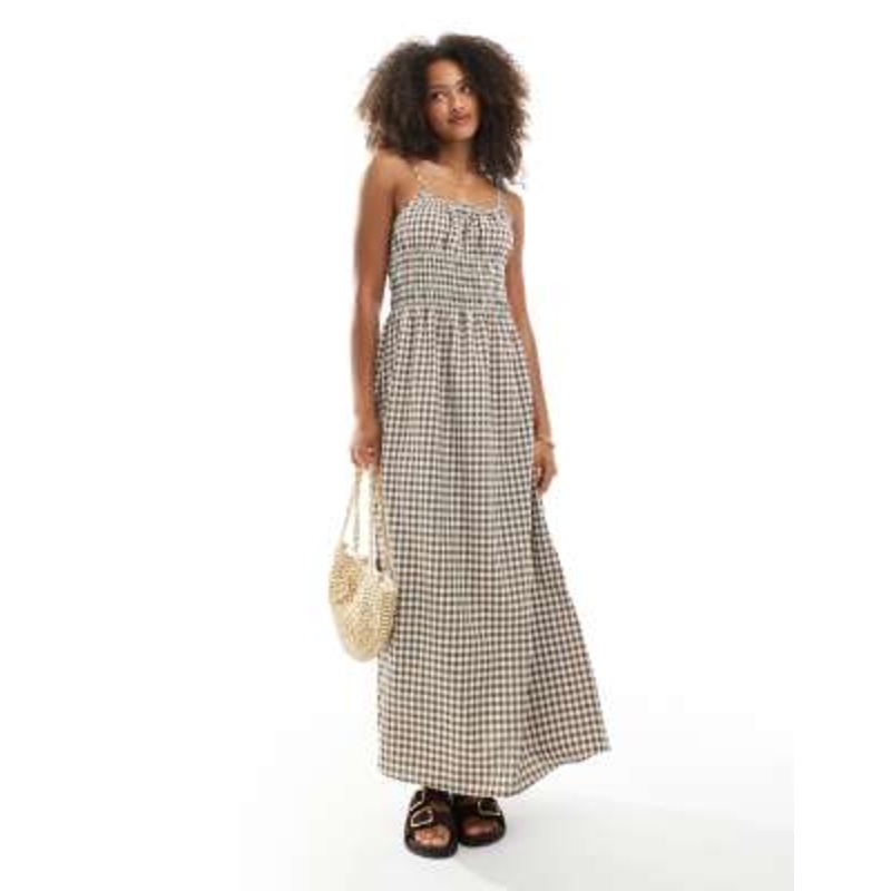 Find the best selection of Daisy Street shirred contrast maxi dress in brown gingham. Shop today with free delivery and returns (Ts&Cs apply) with ASOS!