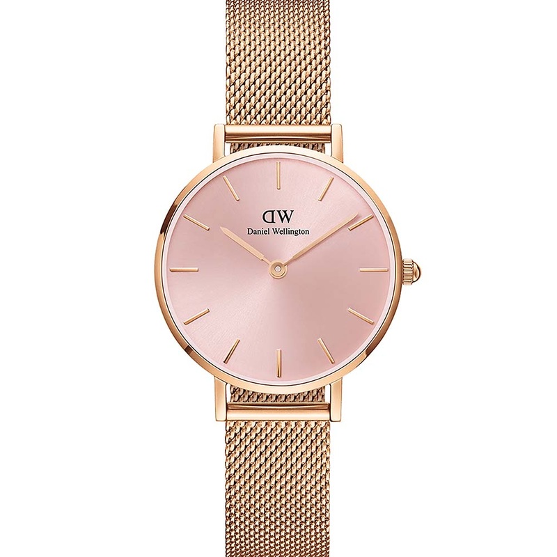 This Daniel Wellington Pink Melrose DW00100368 Rose Gold Mesh 28mm delights in a soft pink dial and bright rose gold tone combination. The beautiful dial is minimalist and pretty, expressed in a feminine 28mm case. The slim mesh bracelet is a perfect fit, offering a flexible, always-comfortable feel on your wrist. This Daniel Wellington is waiting to be your new favourite accessory.