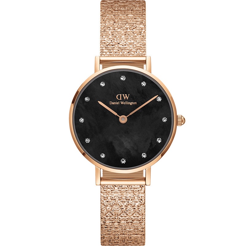 The Daniel Wellington DW00100591 Petite Lumine Pressed Piano radiates elegance in a compact design. Sparkling crystals illuminate the shimmering black dial, featuring a distinctive natural pattern. Offered in three luxurious colours, the new Studio strap with a pressed mesh design complements the watch’s style and intricate detailing perfectly.- Japanese Quartz Movement- 28mm Case Size- Stainless Steel Case and Mesh Strap- 12mm Strap Width – 30 Meters Water Resistant