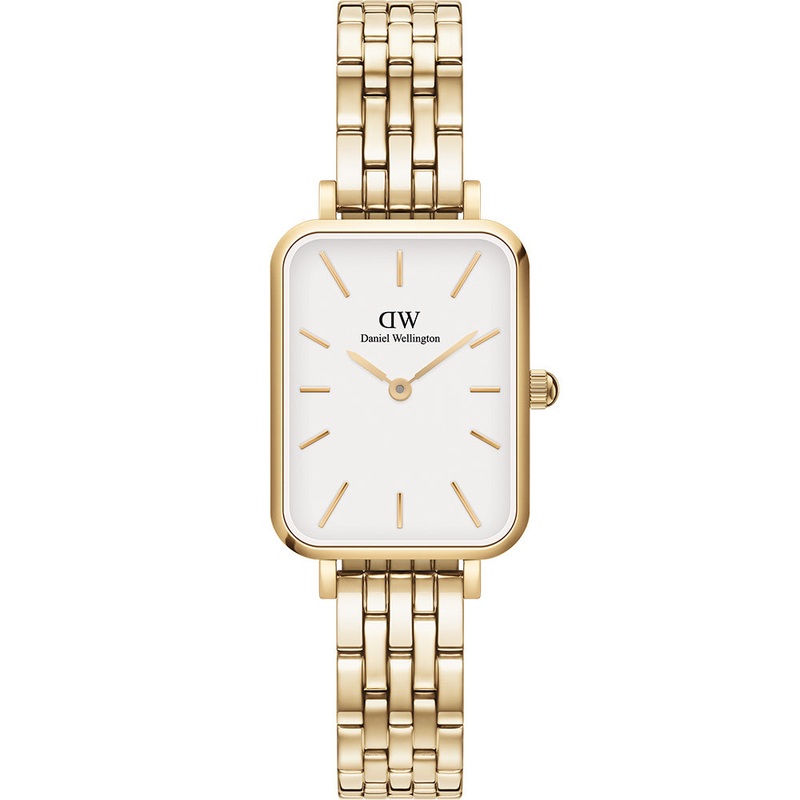 Choosing between minimalism and sophistication? Why not have both with the Daniel Wellington DW00100622 Quadro Link featuring an eggshell white dial and a gold case and bracelet. Introducing the Quadro Evergold with its 5-link bracelet, this timepiece blends the beloved minimalist DW design with a touch of luxury, courtesy of its gold-plated strap.- Japanese Quartz Movement- 20x26mm Case Size- Stainless Steel Case and Bracelet- 5 Link Strap- 10mm Strap Width – 30 Meters Water Resistant