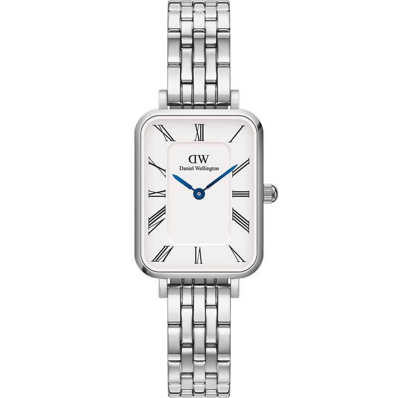 The Daniel Wellington Quadro Roman Numerals 5-Link DW00100691 is a refined and stylish timepiece that seamlessly blends classic elements with modern design. Featuring a sleek stainless-steel case and a matching 5-link bracelet, this watch exudes sophistication and versatility. The minimalist white dial is adorned with bold Roman numeral hour markers, adding a touch of timeless elegance to the design. The inclusion of slender hands further enhances its understated aesthetic. Powered by a precise quartz movement, the DW00100691 ensures accurate timekeeping. With its versatile design and timeless appeal, this watch effortlessly complements any ensemble, making it a stylish accessory for both casual and formal occasions.- 20 x 26mm Case Size- Quartz Movement – 30 Meters Water Resistant