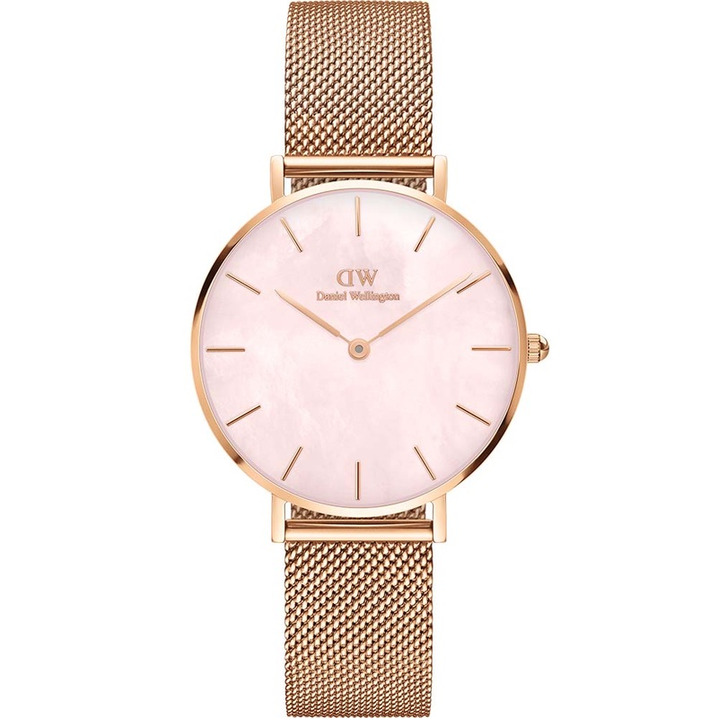 The Daniel Wellington Quadro DW00100516 is a classy womens watch with a gold-plated stainless steel mesh bracelet and case. The watch has a minimalist style with a thin bezel case, the dial is mother of pearl that offers a cloudy texture and has been set with thin hour indices and watch hands. This is a great addition to any modern wardrobe which would perfectly suit the minimalist design.