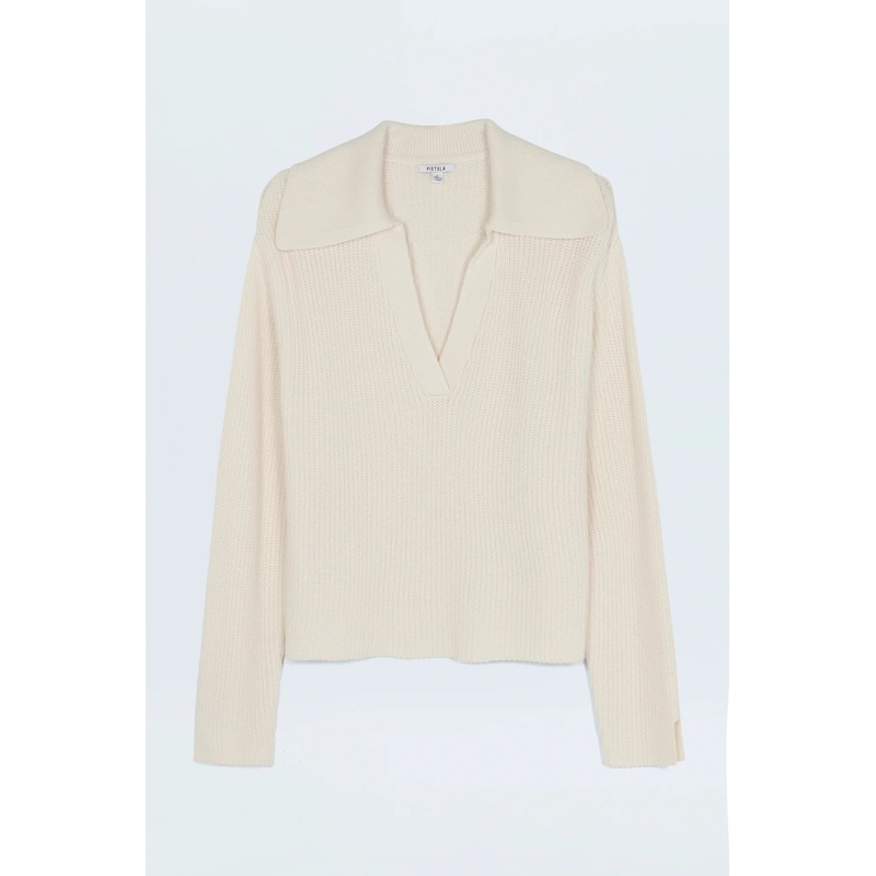 The perfect versatile popover sweater, the Darcy has an exaggerated open collar detail and knit in a soft, textured ecru yarn. Length: 21 Model is 59 wearing size Small 33% Viscose / 23% Nylon / 20% Wool / 20% Cotton / 4% Cashmere
