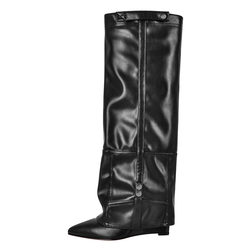 Be the first to review “Denim Pointed Toe Wedge Heel Fold Over Boots”