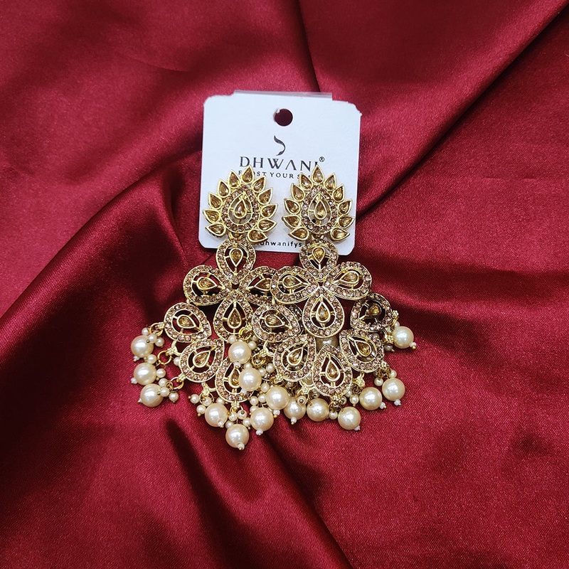 Explore the beauty of traditional Indian jewelry with these Dhwani Gold Plated Austrian Stone And Kundan Stone Beads Dangler Earrings. Made with precision and adorned with intricate Kundan stone work and shimmering Austrian stones, these earrings are the perfect addition to your ethnic wardrobe. Elevate any outfit with these stunning and elegant earrings.Note: Image may be vary slightly from the actual product.