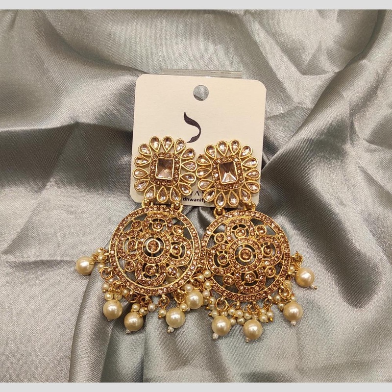 Enhance your look with these elegant Dhwani Gold Plated Crystal Stone And Beads Dangler Earrings. The intricate details and high-quality materials are sure to make a statement. Elevate any outfit with the shimmering crystal stones and delicate beads. Perfect for any occasion, these earrings will add a touch of sophistication to your wardrobe. Made with precision and style, these earrings are a must-have for any fashion-forward individual.Note: Image may be vary slightly from the actual product.