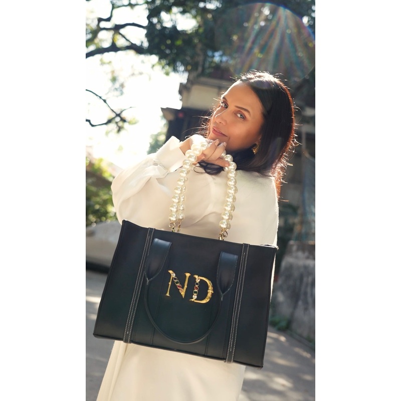 The Diana Personalized Black Tote made from vegan leather is the perfect bespoke bagto take for all occasions. This one is sure to complete all your looks, making a statement everywhere you go, be it at brunch with the girls or at the airport.