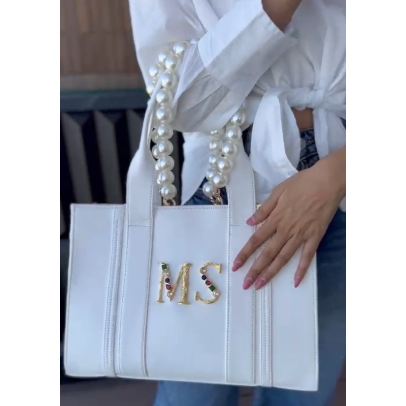 Introducing our versatile tote bag, designed to meet your every need. This spacious travel companion boasts a zippered closure, ensuring the safety of your belongings. With thoughtfully incorporated compartments, it seamlessly transforms from the perfect office companion to an ideal airport carry-on. The personalized touch comes with pearl handles, adding an elegant flair to your day-to-night look. Whether you’re running errands or transitioning from lunch to dinner, this bag is a stylish solution for every occasion. Elevate your hanging-with-girls game with this chic and functional laptop bag that effortlessly combines fashion and practicality.