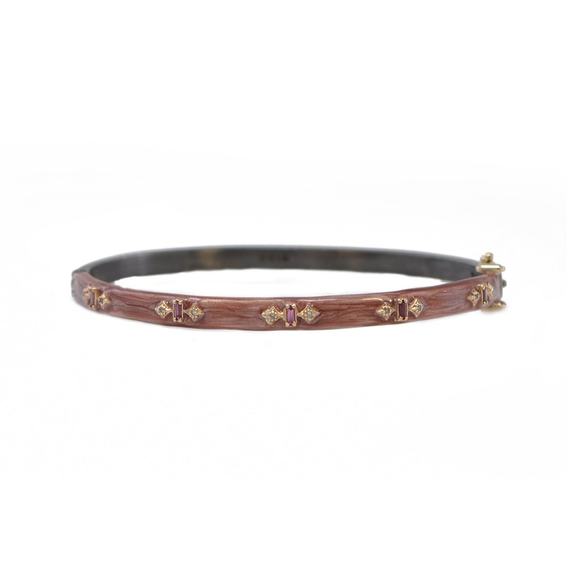 14K Rose Gold and Grey Sterling Silver Crivelli Huggie Braceletwith 0.05 CT Champagne Diamonds and Purple Garnets.