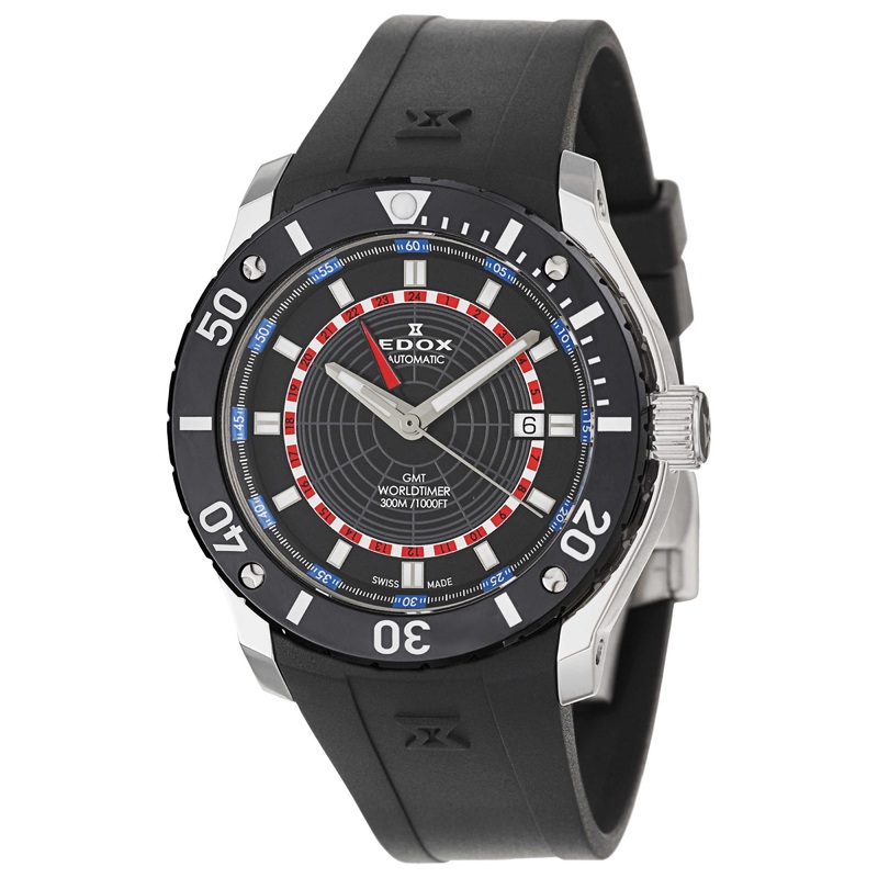 Edox, Class 1 GMT Worldtimer, Men’s Watch, Stainless Steel Case, Rubber Strap, Automatic, 93005-3-NBUR