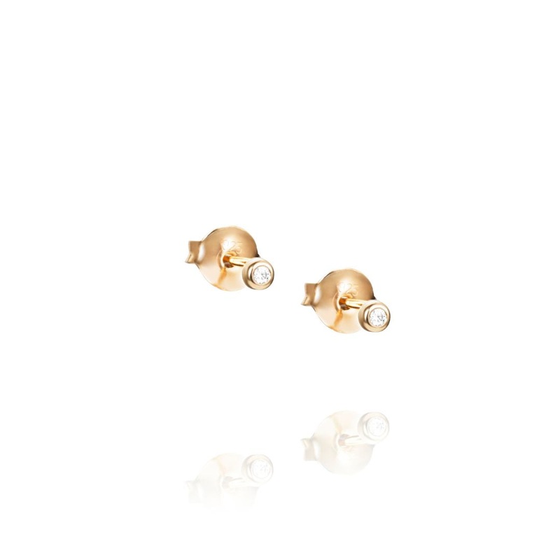 The classic Efva Attling My first diamond studs earrings are the beginning of a beautiful friendship. The 18 carat yellow gold frame of the earring is set with a single brilliant cut diamond. The gold in the earrings is recycled. The earring has a pin fastening and a diameter of 2.3 mm.